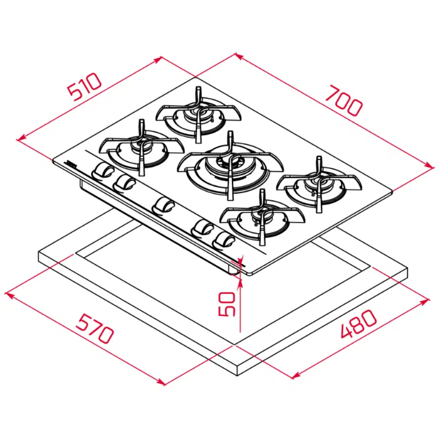 TEKA HF LUX 70 BK SİYAH ÖZEL DÜĞMELİ 70 CM. 5 GÖZLÜ GAZLI ANKASTRE CAM OCAK