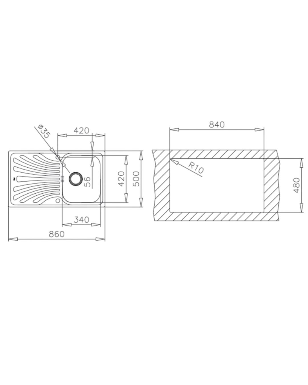 • Tezgah Kesim Ölçüleri: 840 x 480 mm